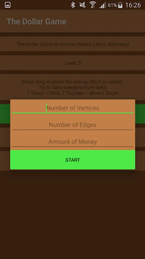 If you want to know what's exactly about, watch https://www.youtube.com/watch?v=U33dsEcKgeQ, a video from Numberphile, where they explained and introduced The Dollar Game to the world :).