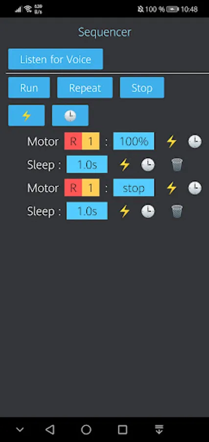 This app is about creating small sequences, that then get executed using Power Functions. The commands are sent to your IR receiver.