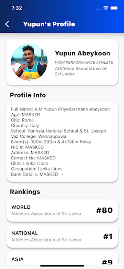 This app allows athletes and coaches to keep track of their performances, activities, payments and profiles. Users can manage their performance data and view performance data associated with other profiles.