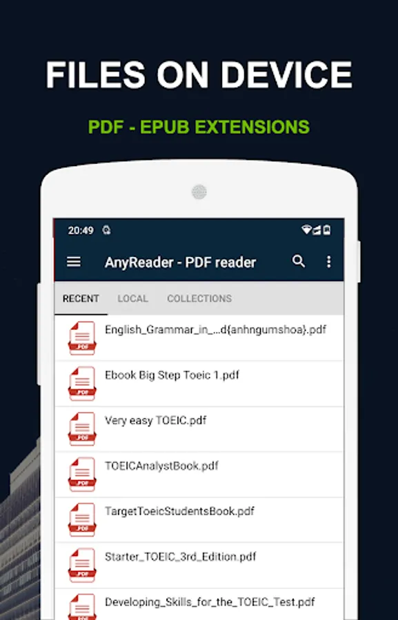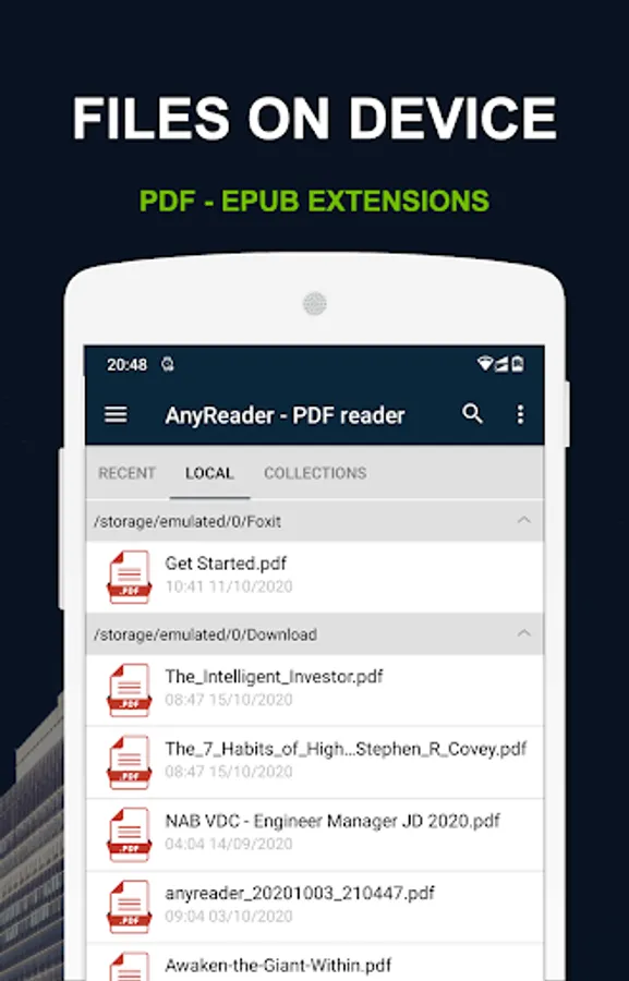 Any reader - PDF reader also is one of the best reading tools. It can help you to easily manage, and open all the ebook on your phone.