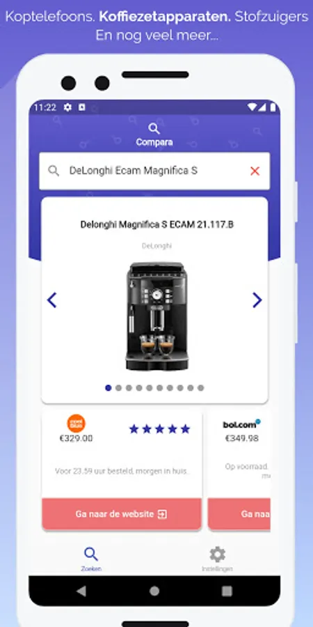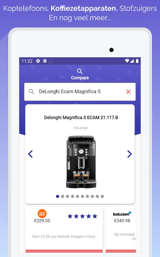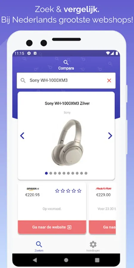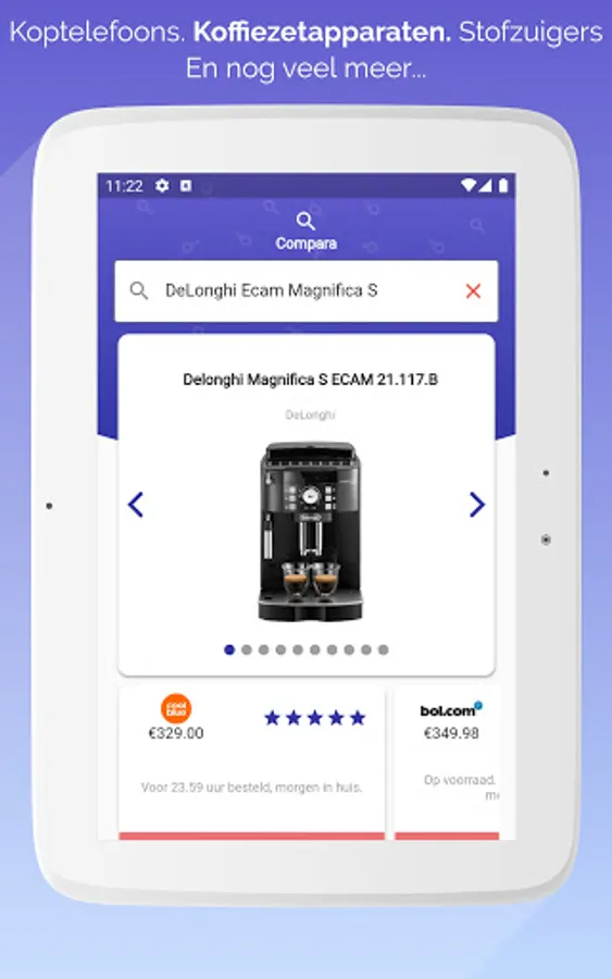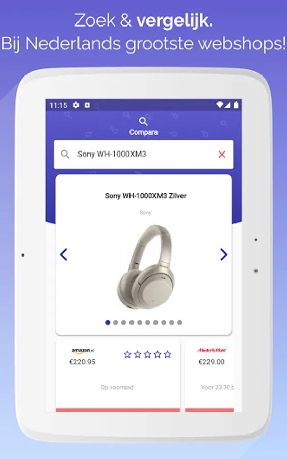 At the moment, Compara is best suited when you have in mind a product of which you already know the type number / type (for example: Bose Quietcomfort 35 headphones).