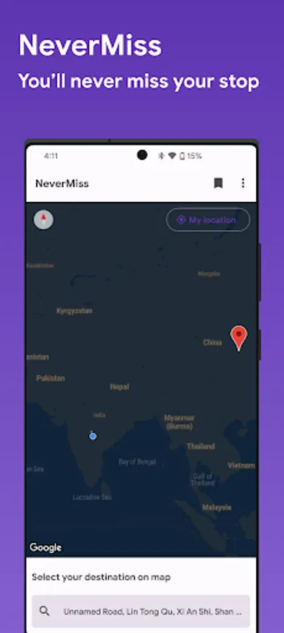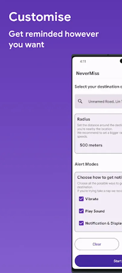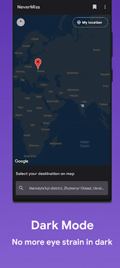 Never miss will alert you when you reached a particular location that you've set in the application.