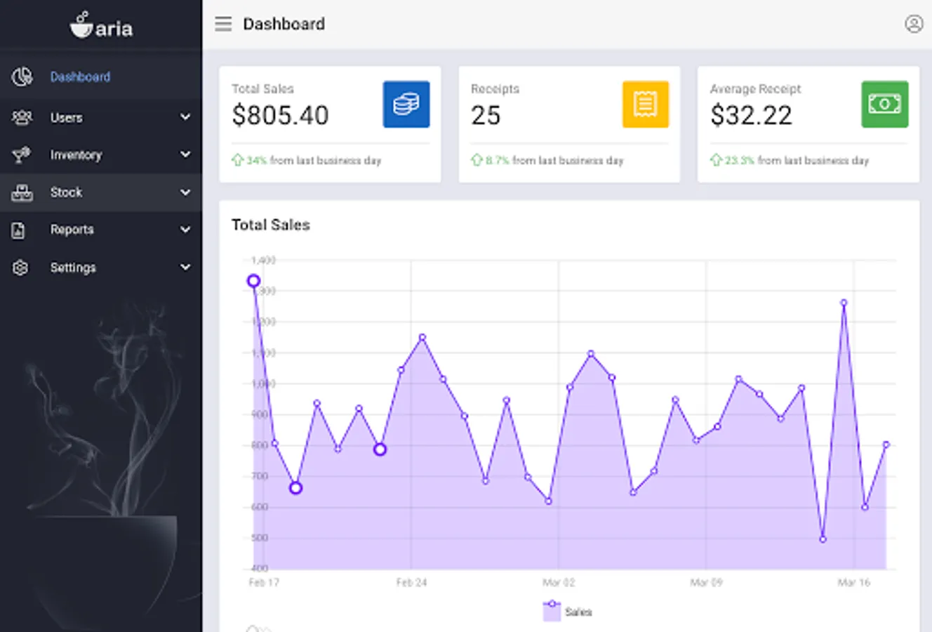 Aria is an online Point of Sale POS software for independent restaurants, bars and pubs that increases number of orders and decreases your expenses. It's a complete solution that takes care of all your business processes, letting you spend more time on the stuff that really matters.