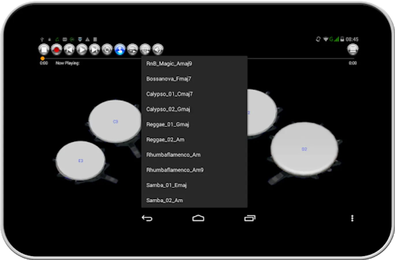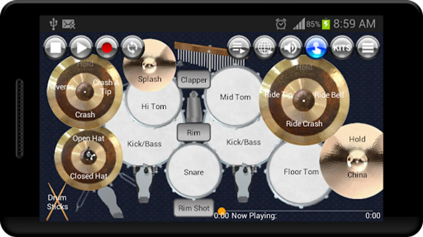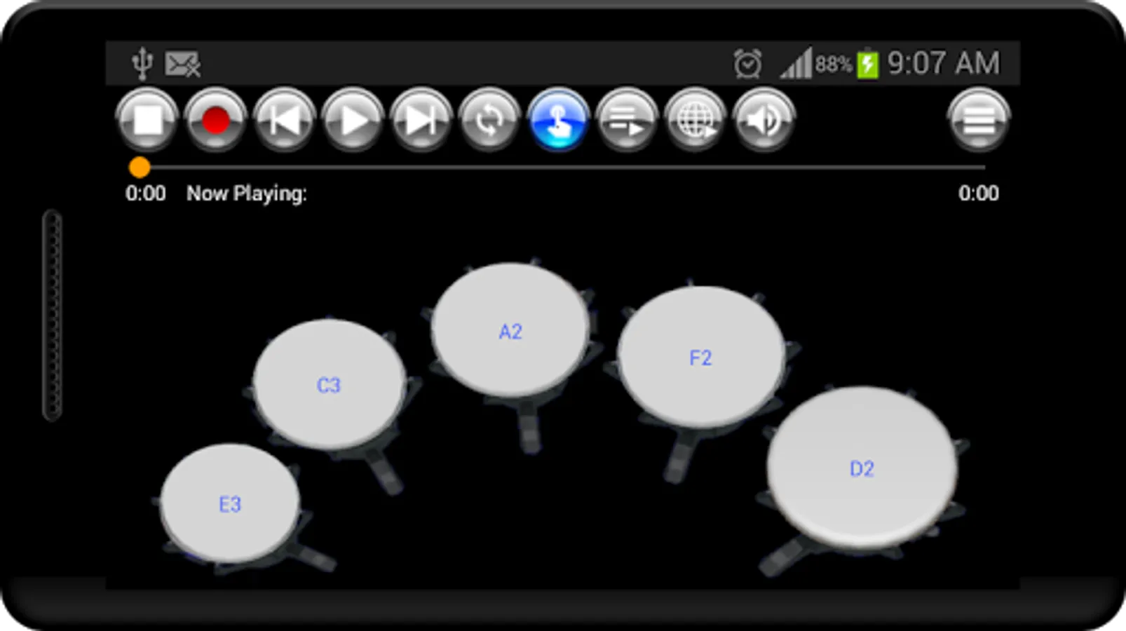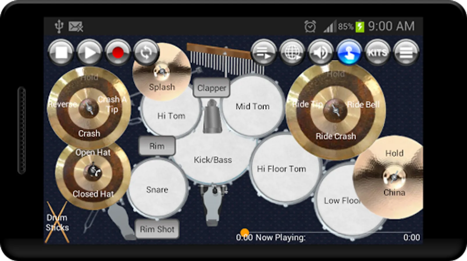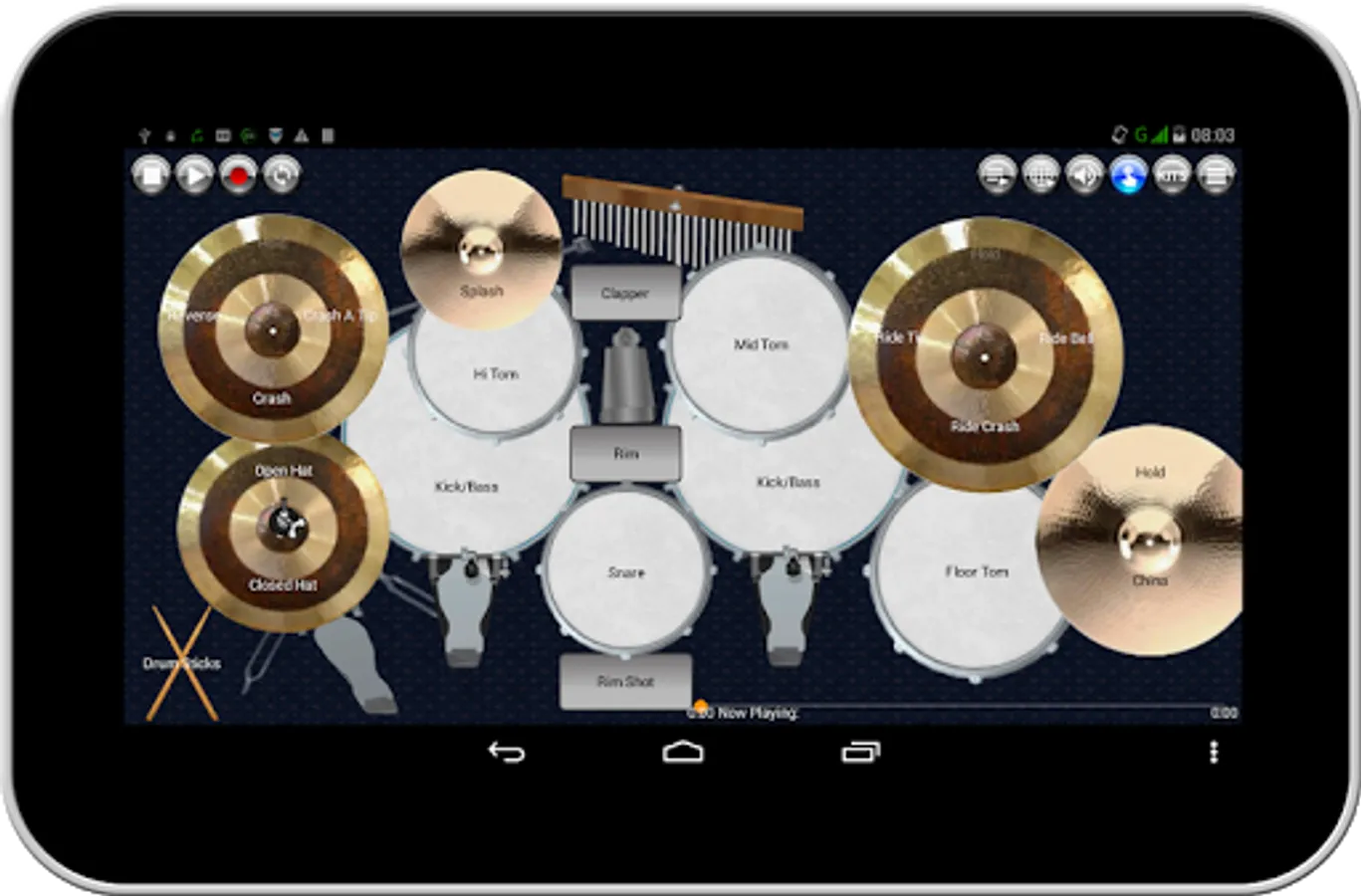 Drums, Percussion and Timpani Pro is the ad free, paid app package of Drums, Percussion and Timpani free app with ads. It is a low latency all in one bundled app for playing drums, percussion set, timpani, audio player/looper, and audio recorder. There are eight layout options for playing drums consisting of three 5 piece kits, two 6 piece kits, one 7 piece kit, one eight piece kit, and a drum pads interface. Drum sounds featured are sounds for standard kit, studio kit, power kit, electronic kit, hit kit, jazz kit, analog kit, and brush kit. The percussion set consists of conga, quinto, tumba, bongo, timbales, cowbell, chimes, woodblock, triangle, whistle, maracas, cabasa, and tambourine. The app features American and German timpani layouts. The app's audio player can access and play user's music collection in their device's music folder.