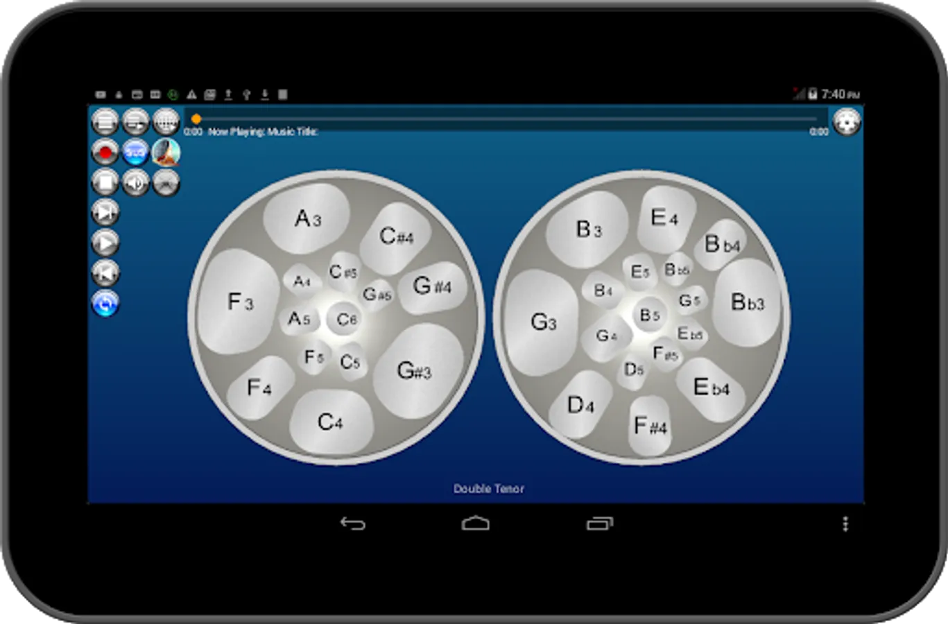 The keys of the steel pan are pressure sensitive on compatible phones which means that hitting the keys lightly produces low-level sounds while hitting the keys hard produces loud sounds.