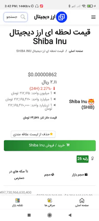 ✅ Instant price of low price currencies like Shiba in Rial and calculation of millions, billions and trillions.
