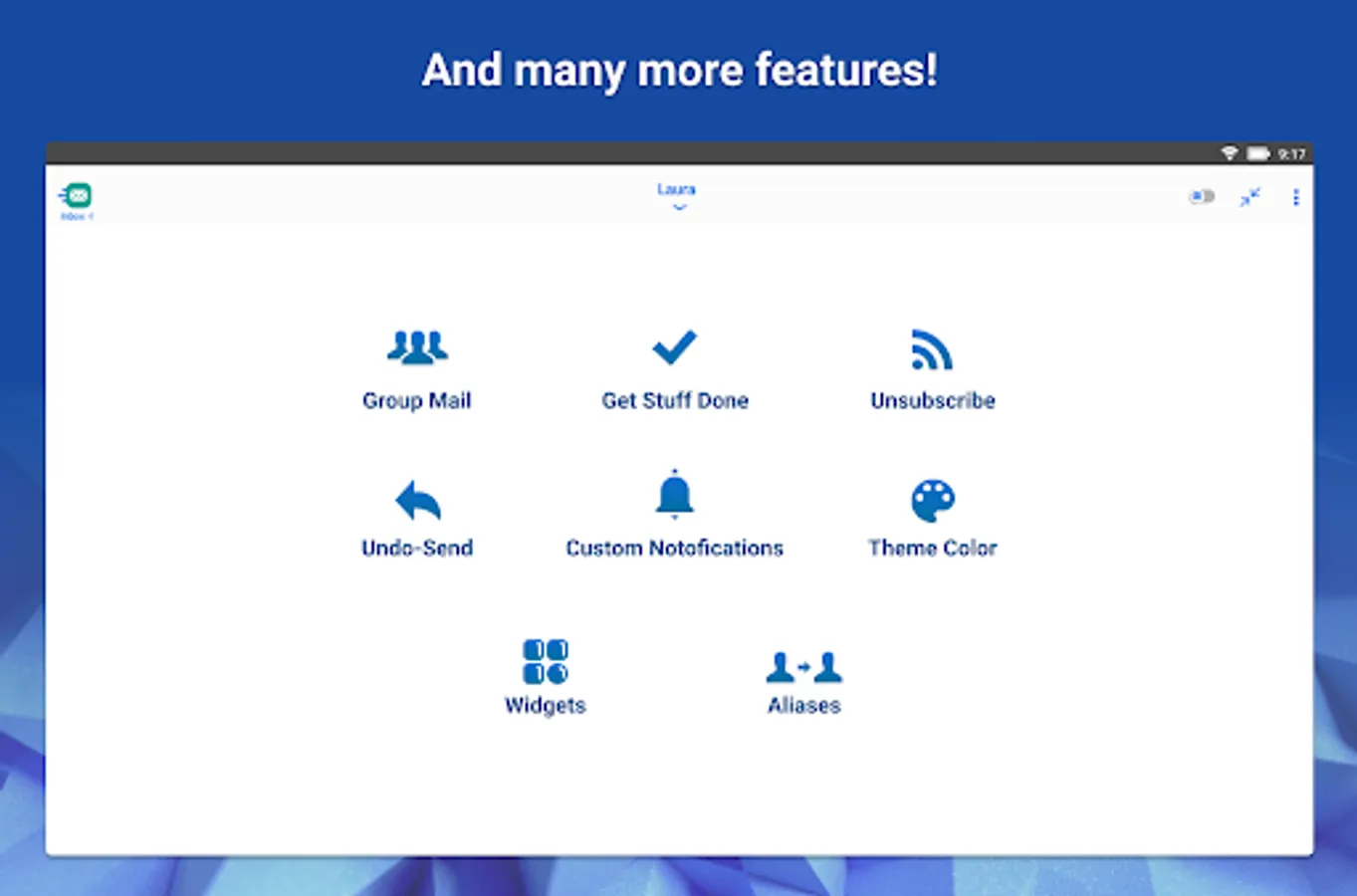 ● NOTIFICATIONS WITHOUT A PROXY - Blue Mail is one of the only modern apps to be a True Android Client by communicating directly with your email provider and not transferring any email messages via an email Proxy Server! Your emails always stay with you
