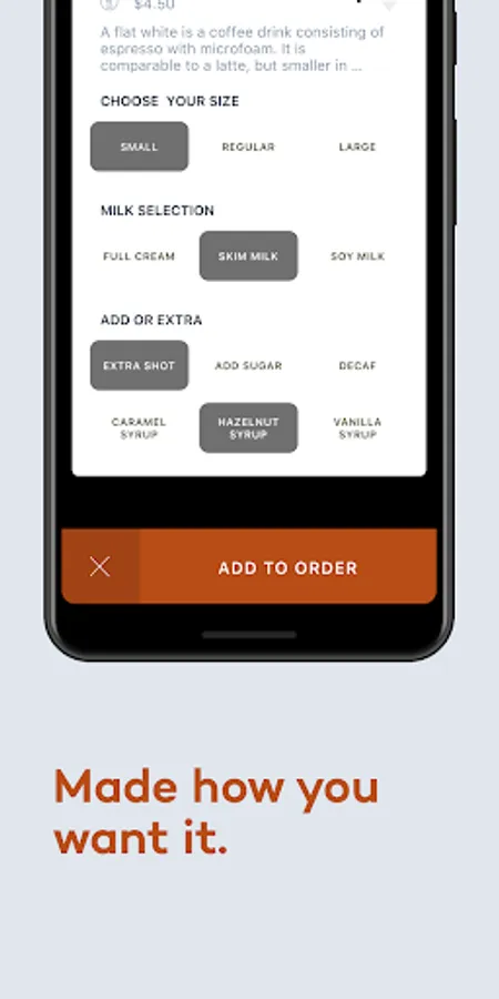 Explore the menus. Personalise your favourite items or discover new ones to try.