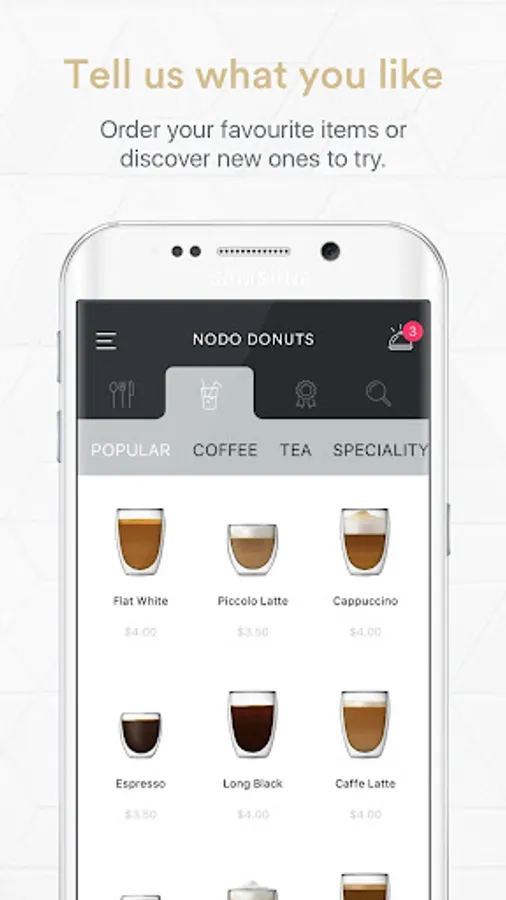 Explore the menus. Personalise your favourite items or discover new ones to try.