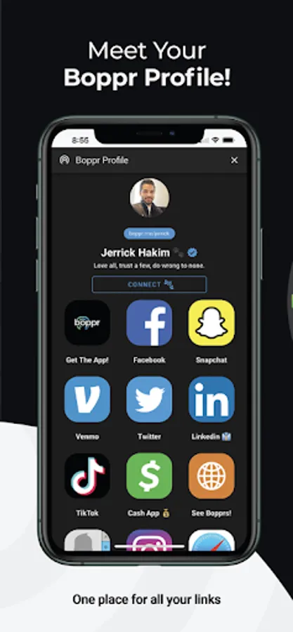 Boppr is the future of connection where one device can share your information with an unlimited amount of people.
