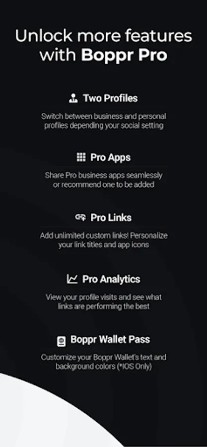 Functionality is a core value for Boppr. Boppr Direct allows you to share just the first app in your Boppr profile. Easily move around your icons by dragging and dropping.