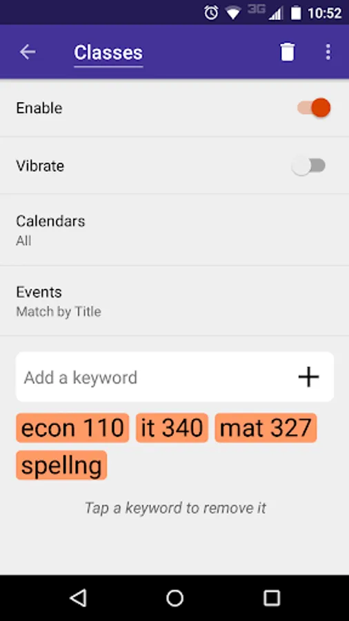 • Match all events in your calendar or match specific events based on keywords in the event title or description