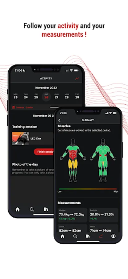 - Access your training history, and specific muscles you’ve worked out during a selected period.