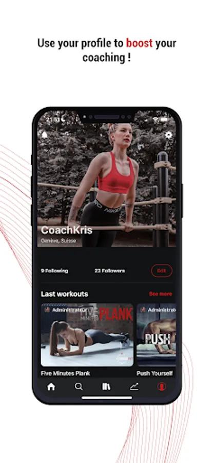 - Discover and add exercises, workouts and programs from your favorite coaches and experience the new content by subscribing to their profile.