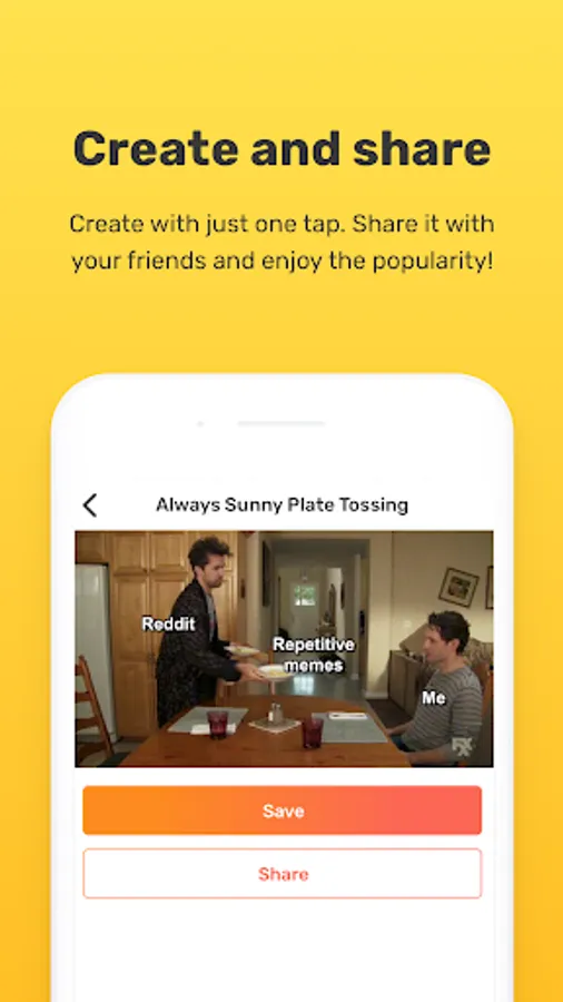- Share all your meme creations to Giphy, Imgur, Tenor, Reddit, Gfycat, 9gag and many more