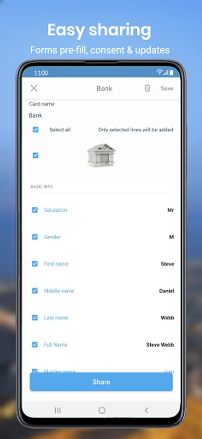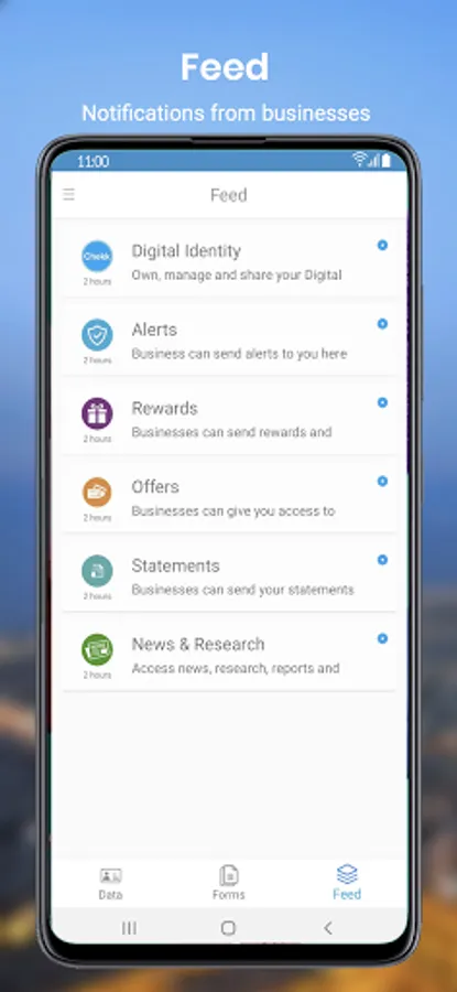 As a user (Individual or Director of a Corporate), the Chekk Mobile app enables you to securely scan, store and manage your personal data (eg., passport, ID card, driving licence, bank and insurance details...), create personal profiles combining data (eg., Bank profile with ID, accounts and policies details; Travel profile with passport, hotel and frequent flyer cards), and share these with others by granting access to your data. It makes your life easier when you need to look up for your data to fill a form or share some of these with a business (eg., bank, travel agent...) And it’s also a central place for you to receive messages (eg., offers, alerts, statements) from the businesses your interact with.
