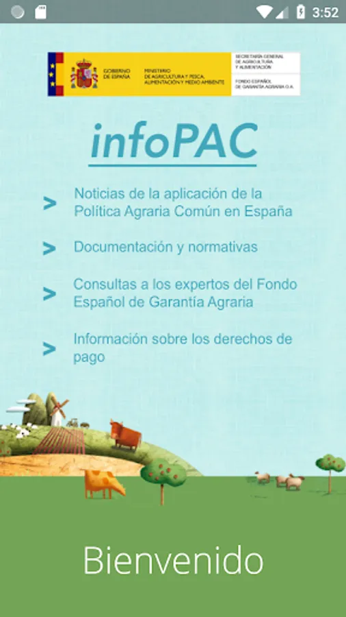 The application is aimed at farmers and technicians who can access the latest news about the application of the CAP in Spain. It contains a catalog of practical reference documents to download, an open online office where to ask the experts and finally an automatic system for consulting the PAC rights recognized to each farmer.