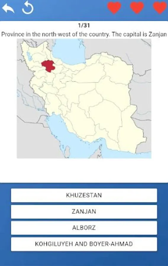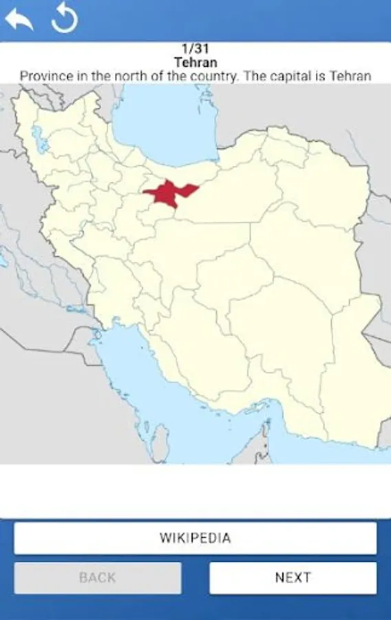 The application will help you study the administrative-territorial structure of Iran in a playful way and test your knowledge.