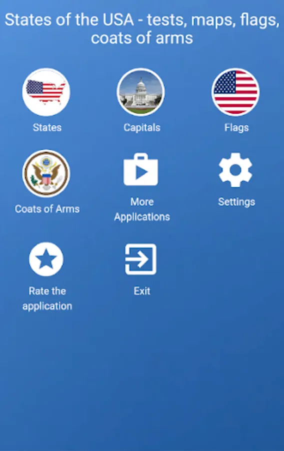 The application will help you learn in a playful way the administrative-territorial structure, official state symbols of the US states and test your knowledge.