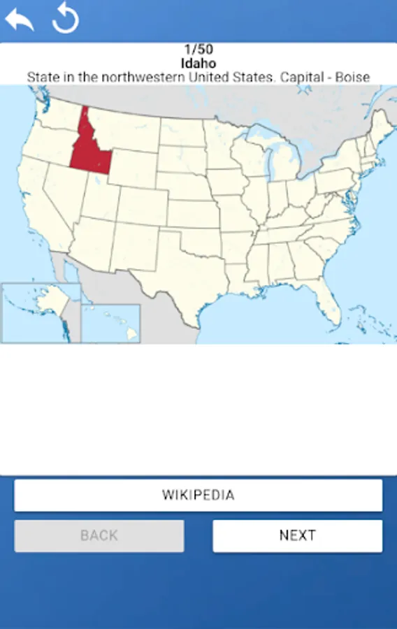 If you want to expand your knowledge, then this application is best for you! You can find out the name, location, borders of all 50 US states, their capitals, flags and coats of arms (seals).