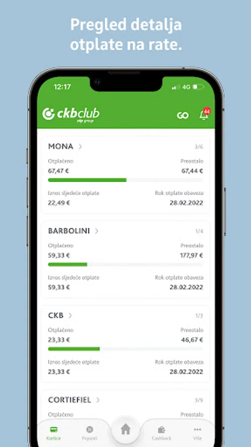 -Cashback - the ability that by using the application and paying with CKB cards win Cashback Through the CKB Club application, they can see all active campaigns, their progress in achieving cashback for a specific campaign, as well as how much money they have earned so far.
