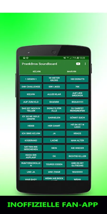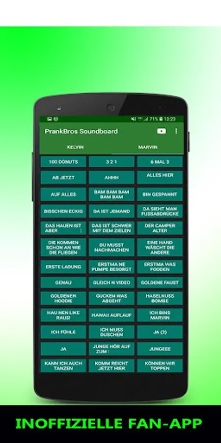 Here you will find numerous sayings by the Prankers Kelvin and Marvin, which you can play offline and online at the push of a button.