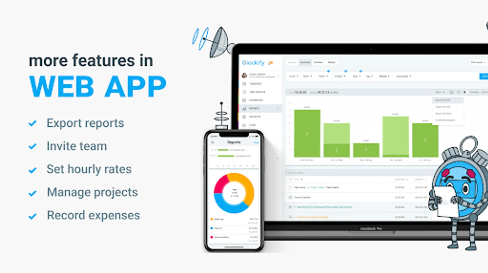Clockify is a free time tracker app for teams. It allows you to track the time you spend on projects and analyze your productivity.