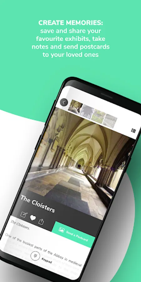 CloudGuide helps you plan your visit (choose from hundreds of museums, historical sites, parks and monuments nearby, check their opening hours and agenda, get your tickets), make it more fun (enjoy multimedia tours, professionally made audio guides and games) and cherish memories (take notes, send postcards and share the things that impressed you most with your family and friends).