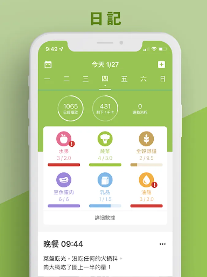 ●Provide dietary database, complete nutrition information of tens of thousands of foods, and easily query convenience stores, some restaurants for eating out, common ingredients, and log into the dietary records for reference.