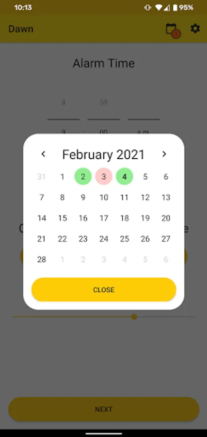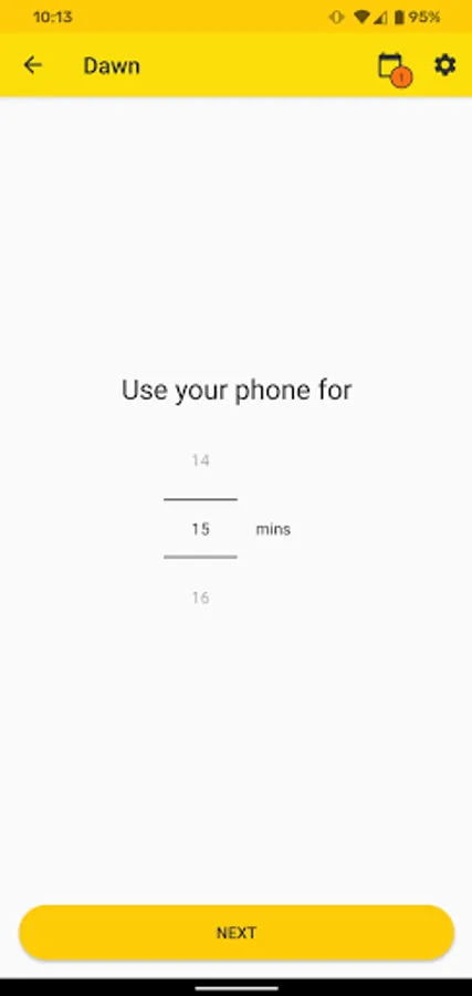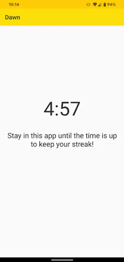 Dawn allows you to set how long you want to use your phone after dismissing your alarm each day. To make sure you stick to it, Dawn keeps track of your successes each day allowing you to track your progress and build a streak!