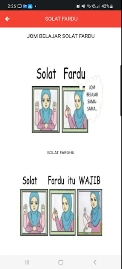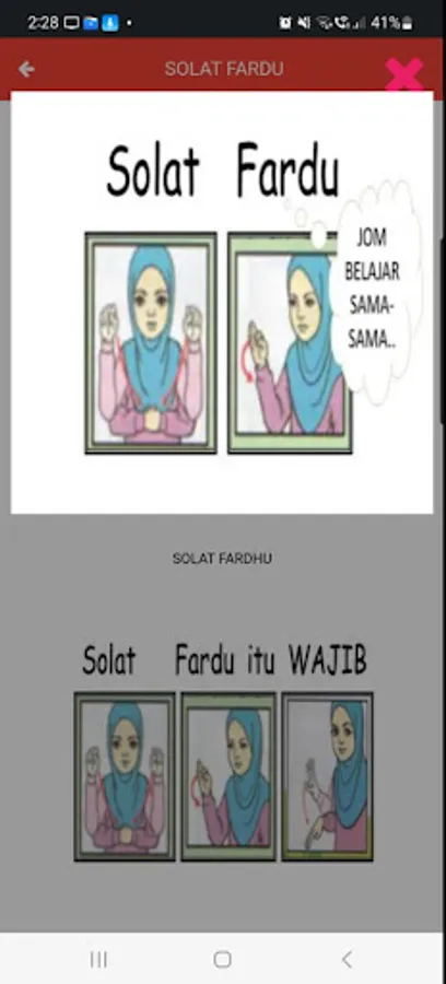 Aplikasi ini berkaitan penerangan panduan belajar solat berbantukan Kod Tangan Bahasa Malaysia (KTBM) merupakan satu-satu bentuk isyarat tangan yang diiktiraf oleh kerajaan Malaysia sebagai bahasa komunikasi bagi orang yang pekak dan bisu. Kod tangan ini juga dirujuk sebagai Bahasa Melayu Kod Tangan,