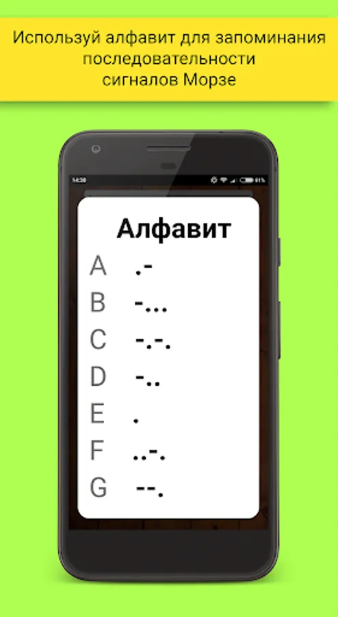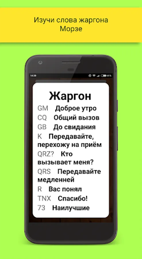 Learn to understand Morse code, having fun with the app! Transforms ordinary words into a sequence of signals. In the future, you can try out their skills behind the telegraph key, is already transforming the signals in the usual words. It is also available with a coded alphabet each letter.