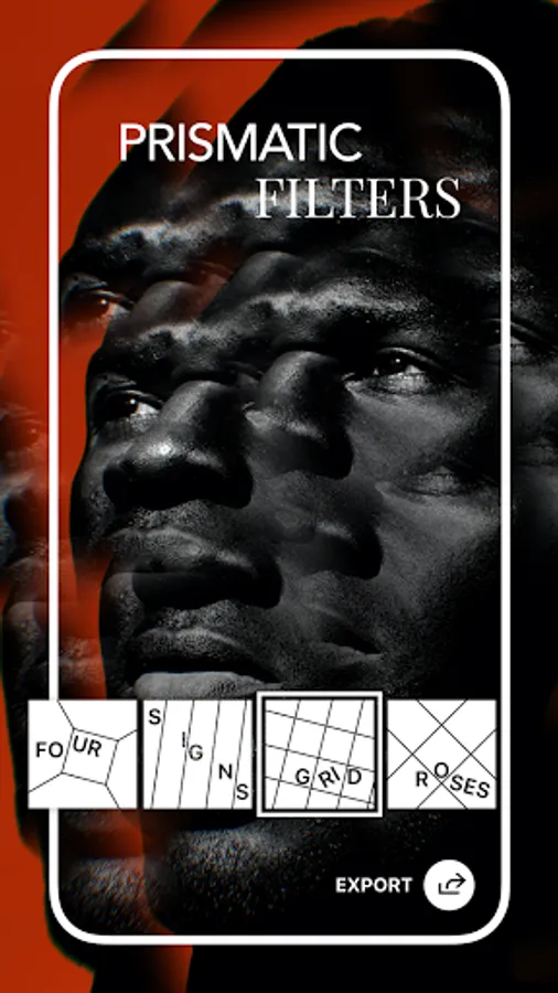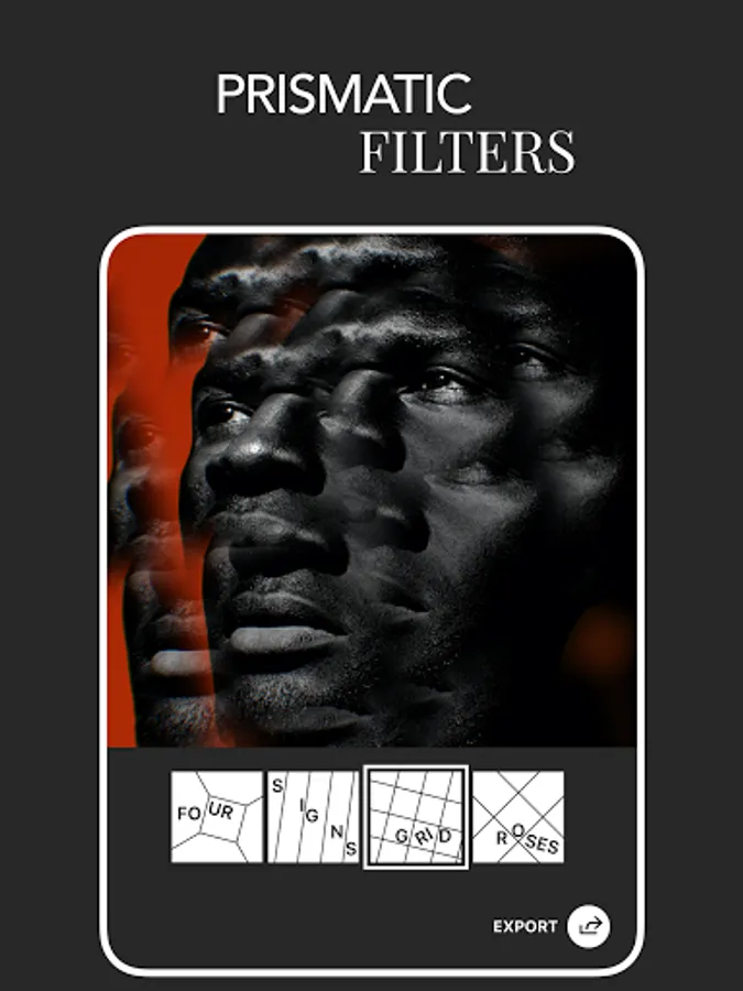 + Blur grid edges to add some mystery or sharpen them and have fun with your crisp duplicates;