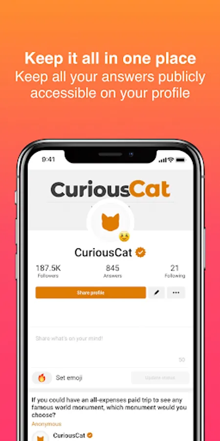 Getting questions in CuriousCat is as simple as sharing your profile!