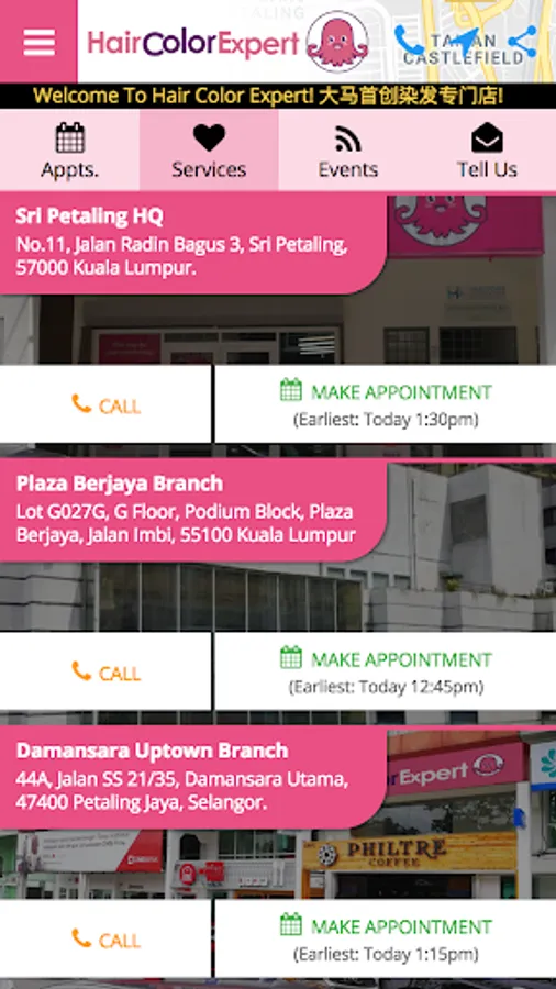 As part of our effort to save your precious time, download Hair Color Expert (HCE) Mobile App to check our branches availability and make an appointment with us!