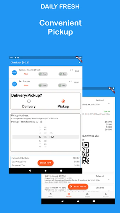 Choice between Delivery or Pickup. Deliveries are now left at your door by default and you have the choice to select “Hand it to me” if you prefer. Pickup is enabled using QR Code.