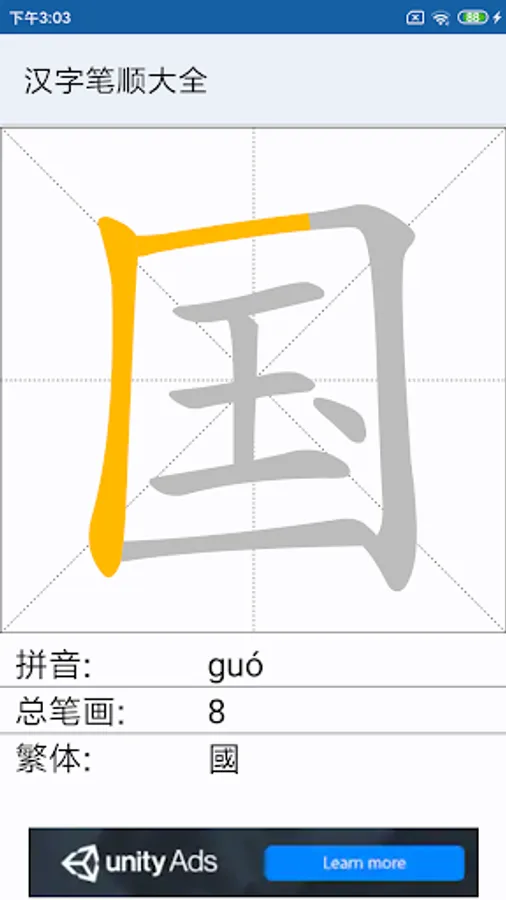 Show the stroke order of Chinese characters in the form of animation, which is intuitive and convenient for learning and memorizing