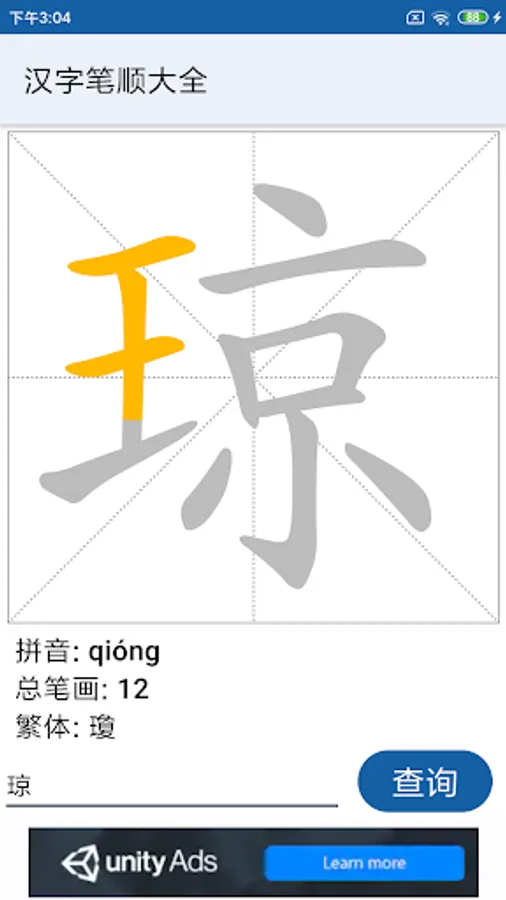 Show the stroke order of Chinese characters in the form of animation to help users learn the stroke order of Chinese characters