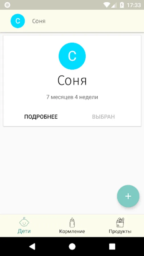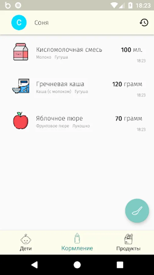 In the future, it will be added the ability to indicate the reaction of the baby to the lure, and also to look at the statistics of the introduction of complementary foods.