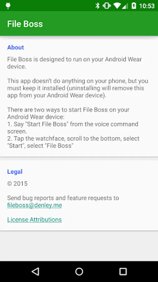 File Boss is a file browser for Android™ Wear. View, open, copy, move, and delete files from your Android Wear watch.