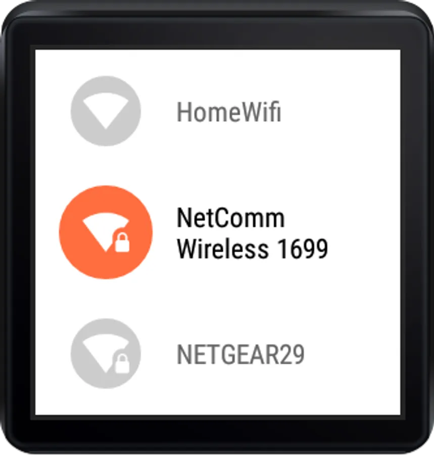 - Display nearby Wi-Fi networks on your watch, and connect to them.