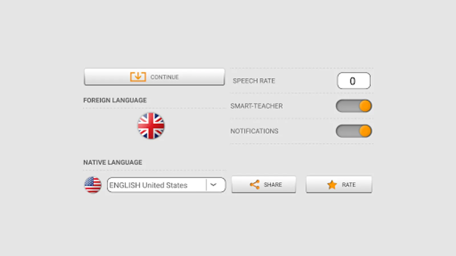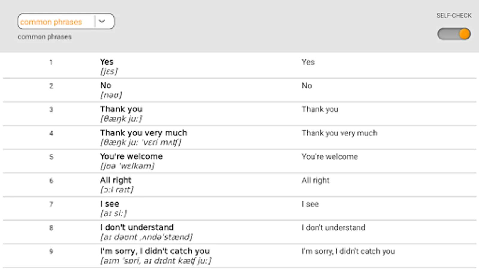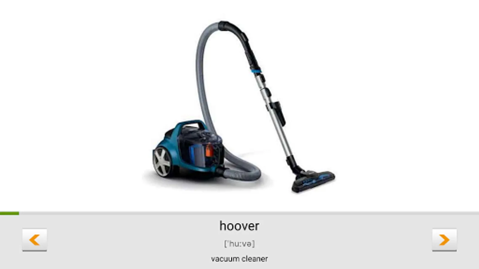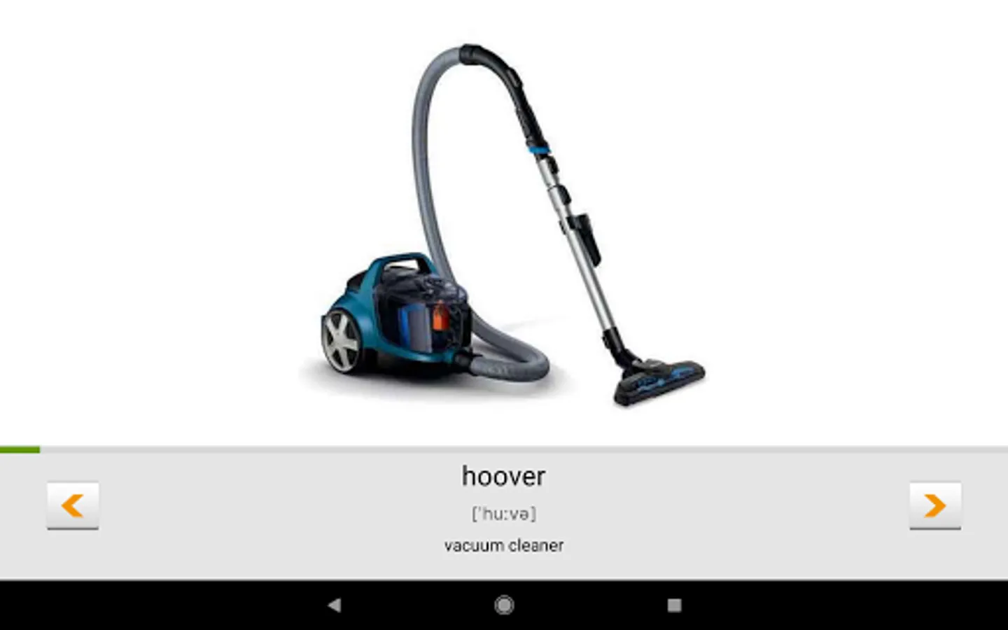 - Learning the alphabet, parts of speech, such as nouns, adjectives, verbs with phonetic transcription through flashcards and sound accompaniment (voice) by native speaker.