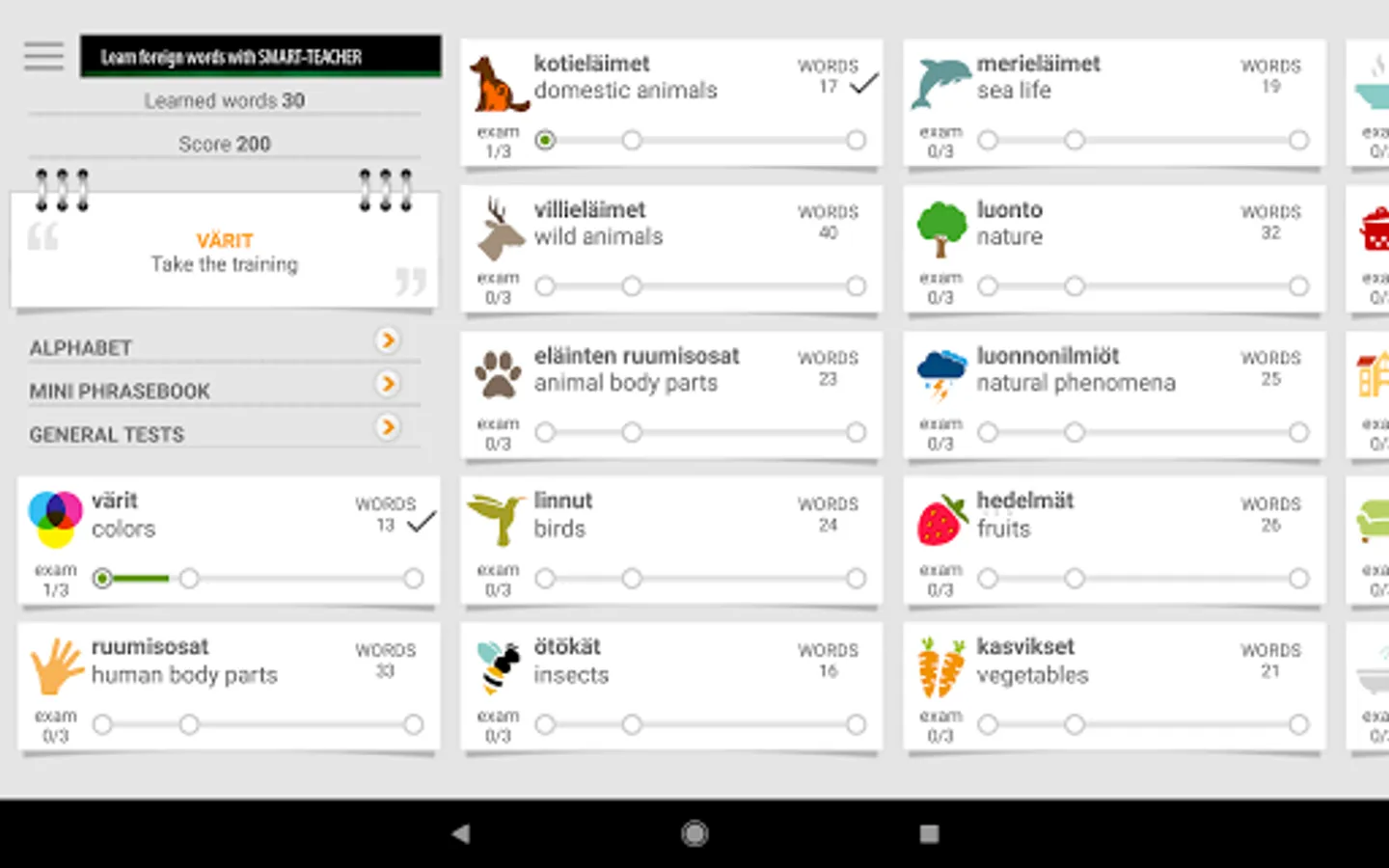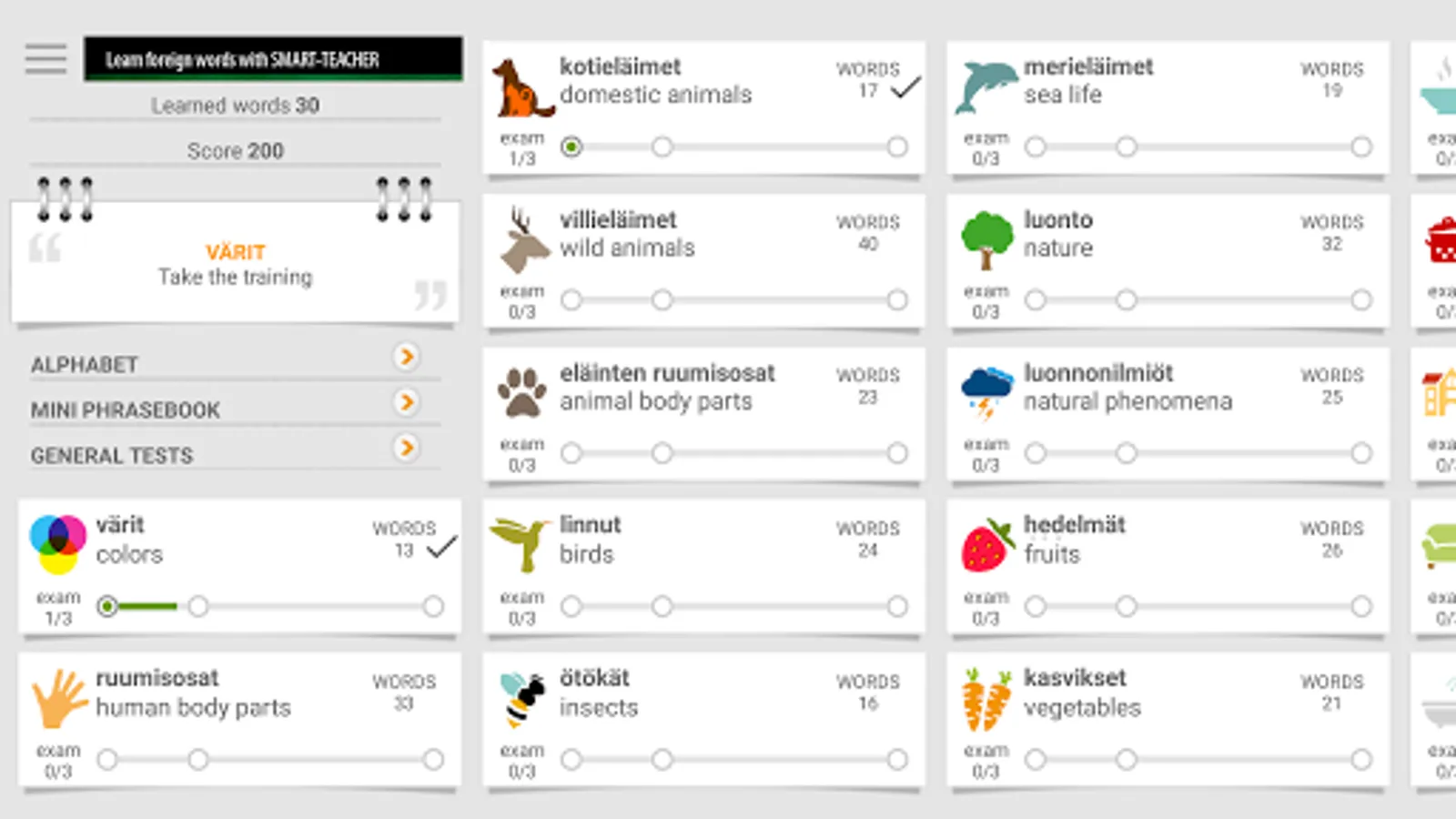 This is practically an illustrated dictionary and exercises for learning Finnish language that helps beginners and children to learn Finnish words through playing.