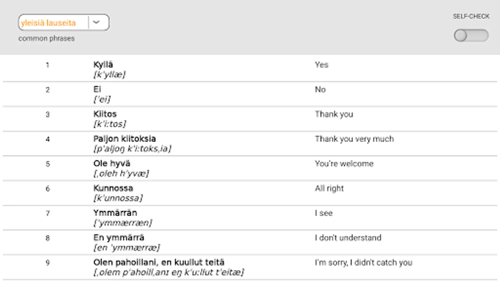 Added Finnish-English phrasebook with transcription, it includes finnish phrases and common expressions, adjectives, topics - months and family.