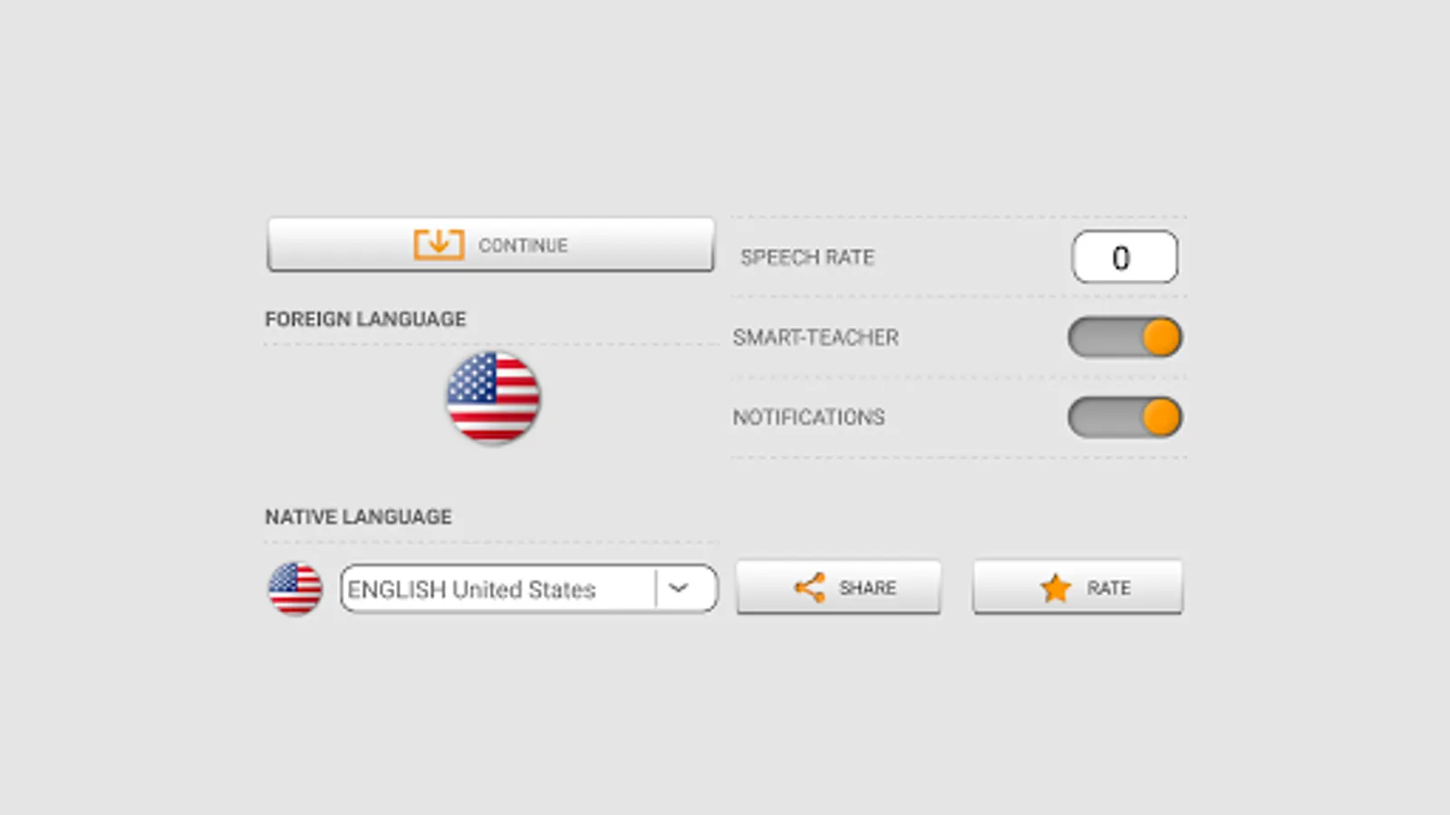 - Learning the alphabet, parts of speech, such as nouns, adjectives, verbs with phonetic transcription through flashcards and sound accompaniment by native speaker.