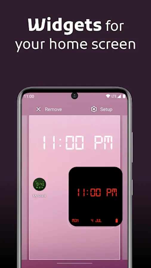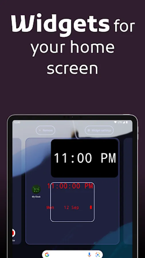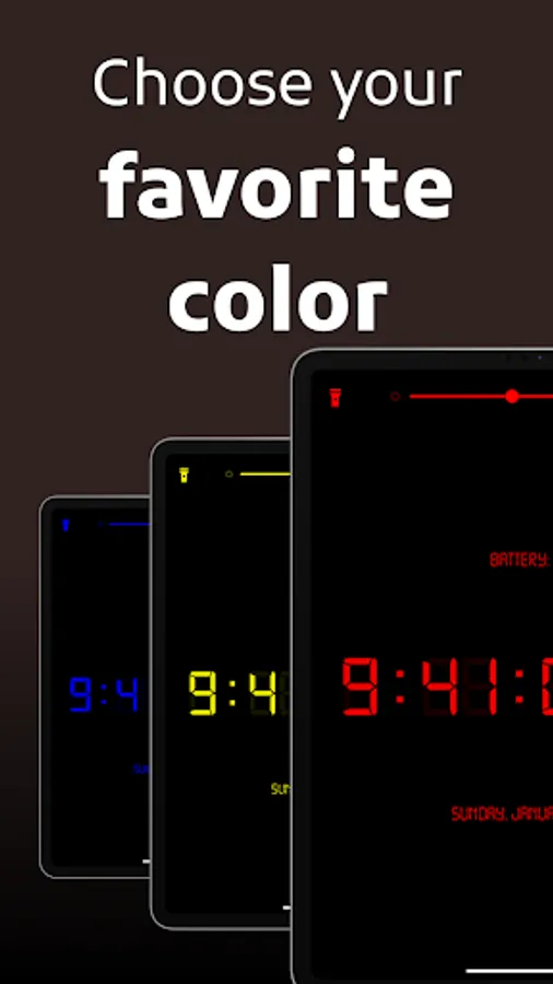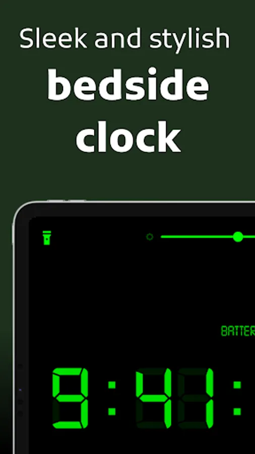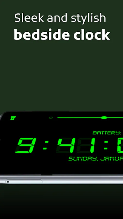 Turn your Android device into a simple, yet powerful digital clock with seconds, date and battery display with the MY CLOCK app. Now your phone or tablet will make a beautiful, functional and reliable tabletop clock!