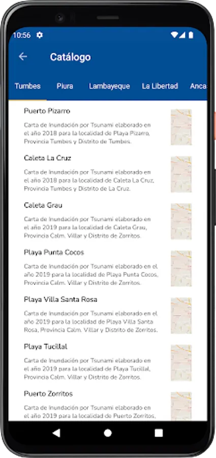 - Display of the Flood Zones of the Peruvian coast, these areas are shaded in two colors: pink and red. These are simulations of tsunamis caused by earthquakes of different magnitude.