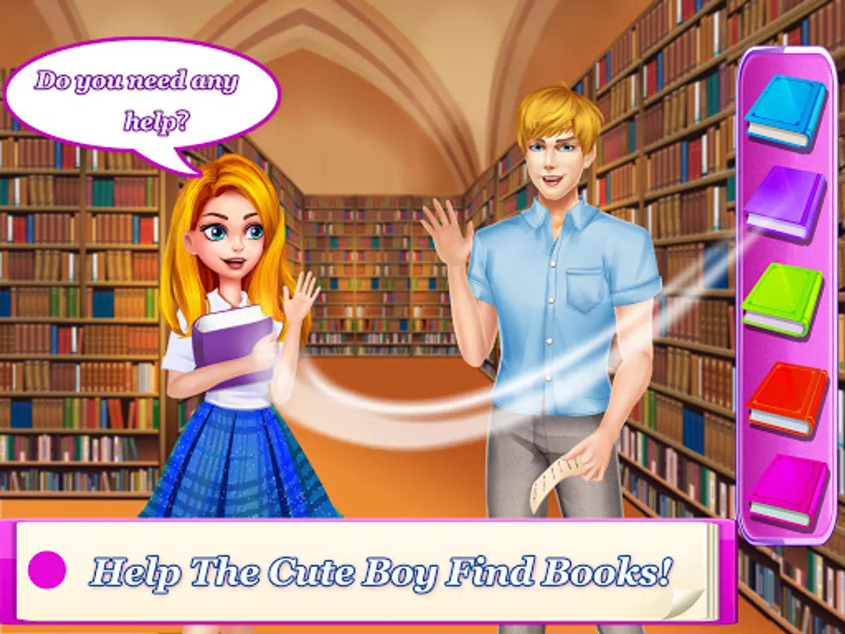 -Oh! There is a guy in the library corner! I think he needs your help.