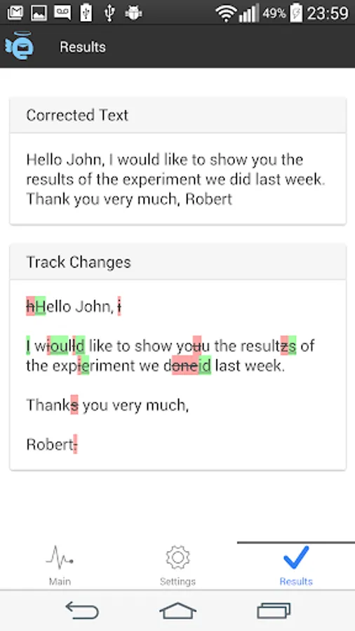 With one click your text is sent to one of our professionals, who personally corrects it and makes sure you sound professional. We correct (not translate) spelling, grammar, punctuation and proper words usage. We correct texts in English, Spanish, French, German and Hebrew.