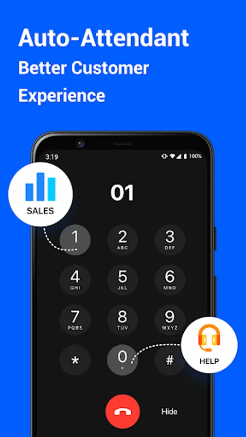 A better cost-effective customer experience solution with call management covered 24/7, automatically routing customers to the right number or the voicemail by dial key.